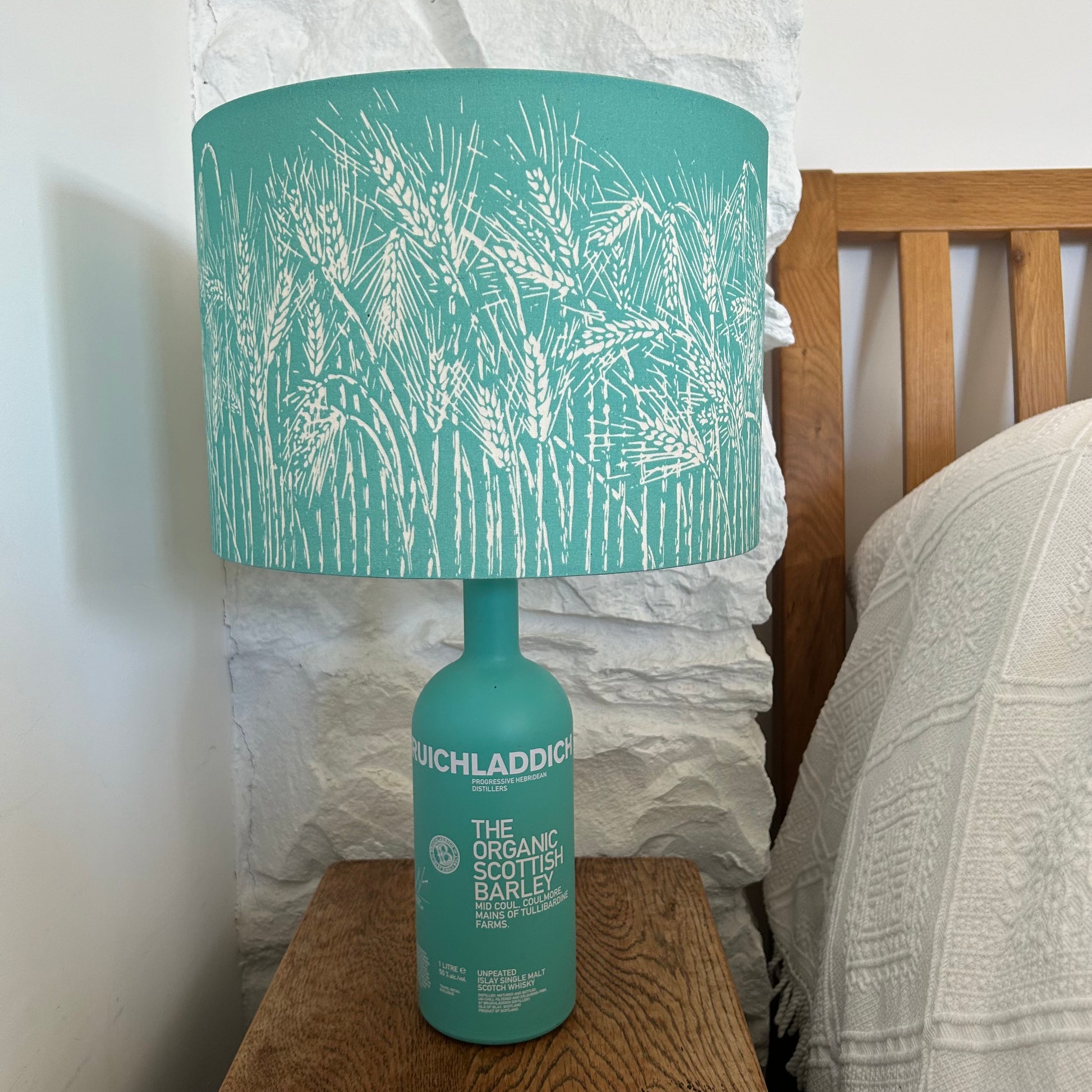 This lampshade is handmade using bespoke fabric designed by us based on our linoprint of a field of barley. Inspired by Islay's rich whisky heritage, barley is the key ingredient that creates our world famous spirit.