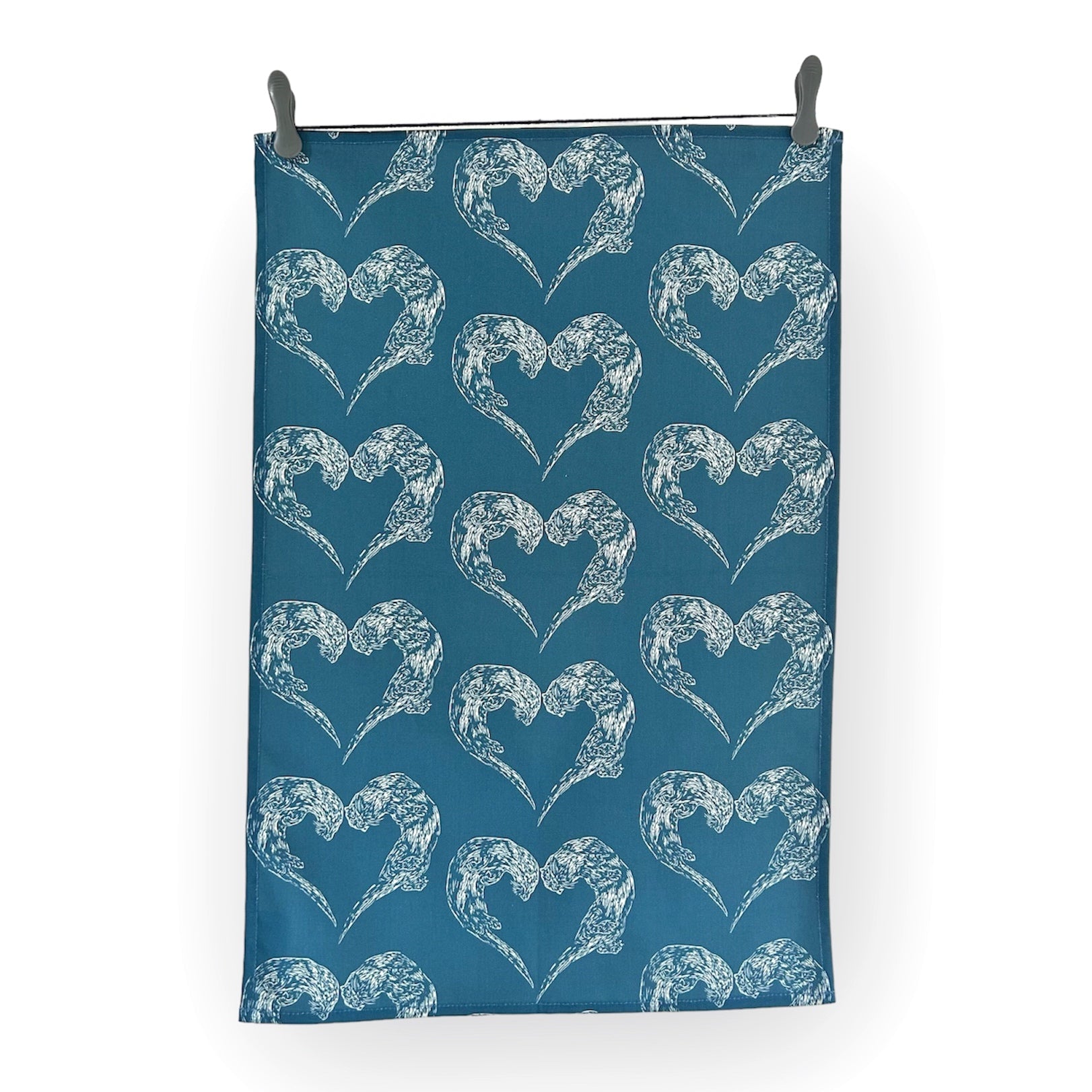 Our beautiful swimming otters tea towels in a deep blue would be at home in any kitchen. Taken from our original linocut design these would make the perfect gift for anyone that loves the sea and these beautiful creatures.