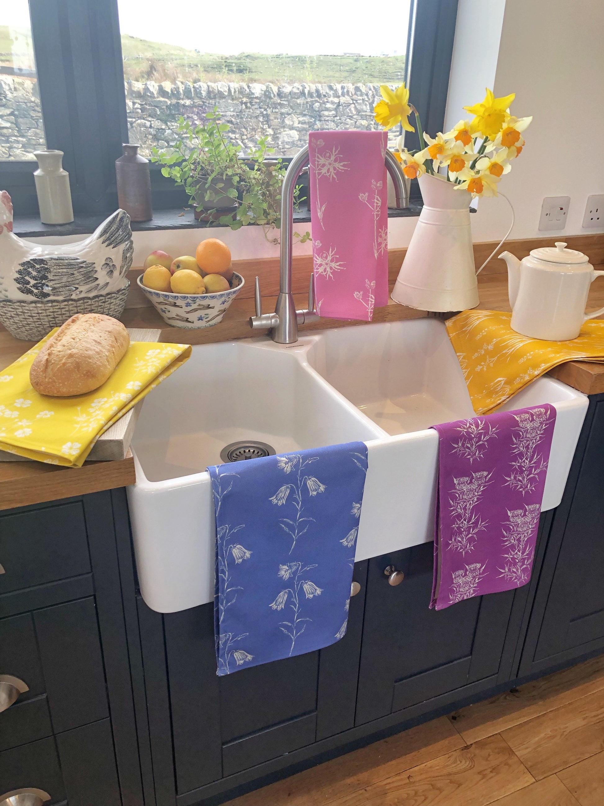 100% Natural Organic Cotton made in the UK and digitally printed so that the colours stay fresh, fast and bright. Each tea towel comes with a paper belly band ready to gift.