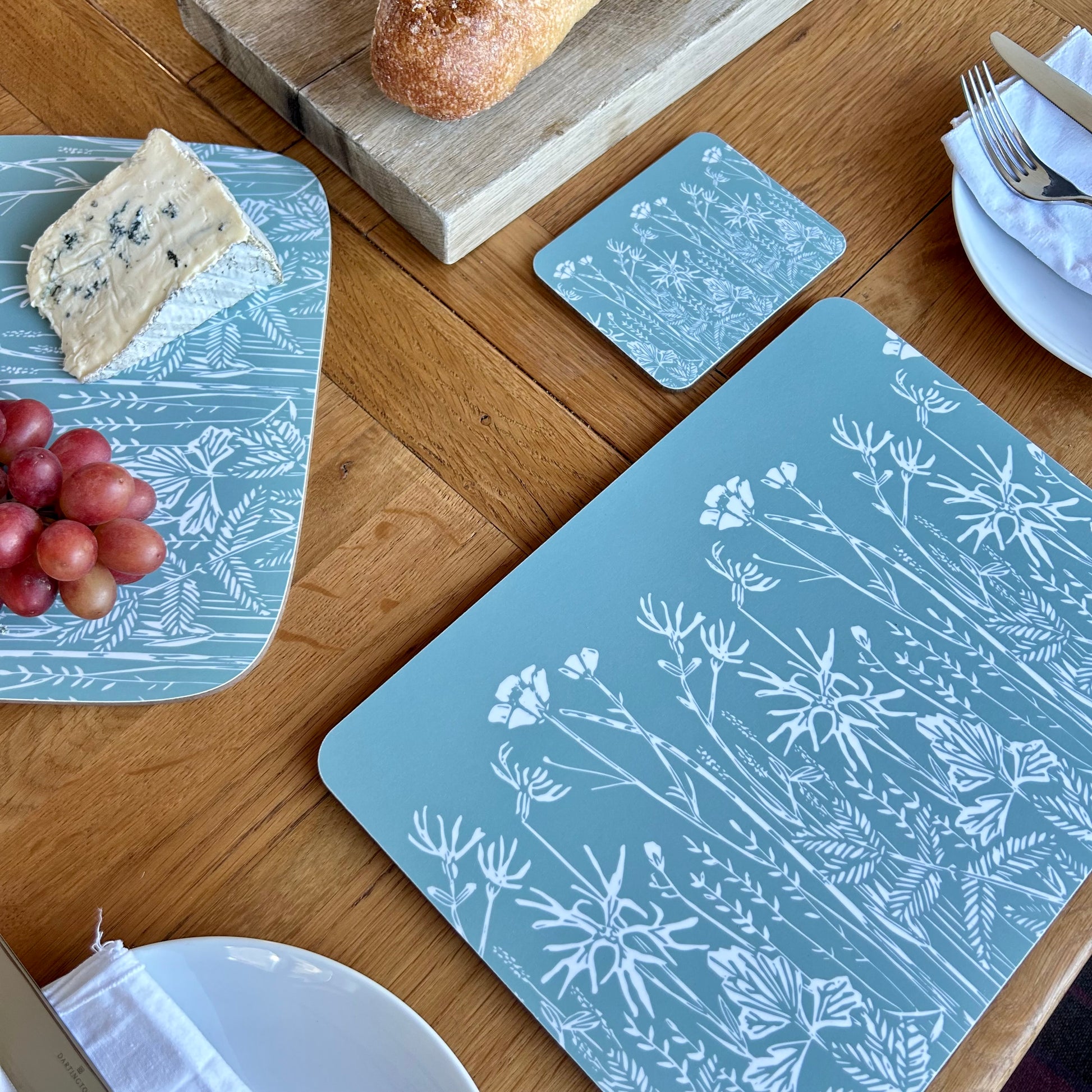 Each quality placemat is made in the UK and measures 115 x 90mm. It has a matt melamine surface which is able to withstand temperatures up to 160C. Each has a 4.8mm FSC Eucalyptus Hardboard Core backed with FSC Cork.